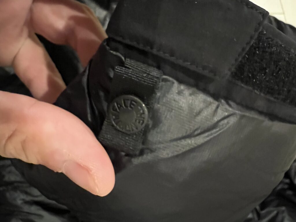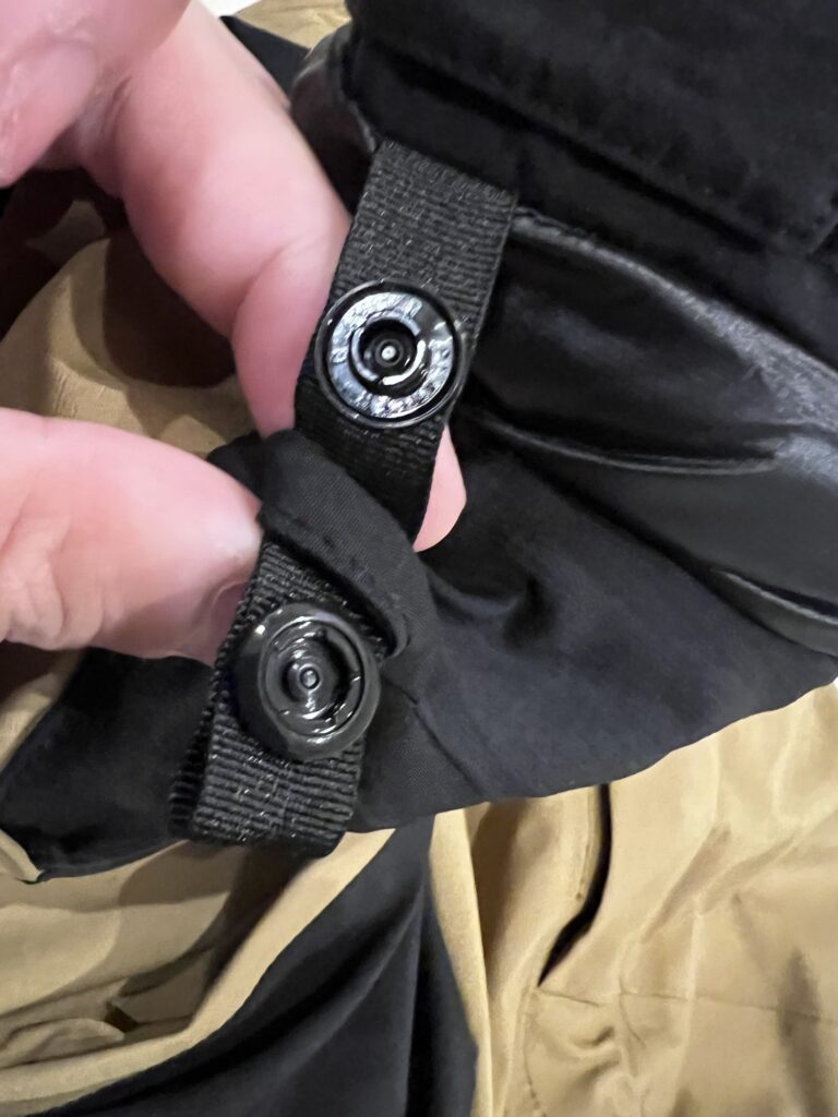 袖口のジップインジップの装着はとても簡単でタグのボタンを留めるだけです。